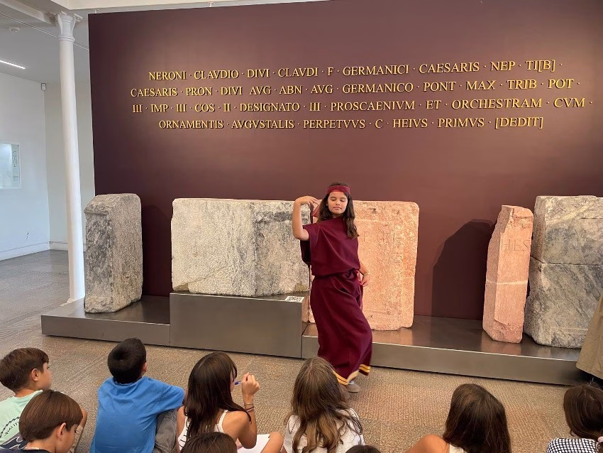Eu fui ao Museu do Teatro Romano e vi como já era muito antigo e estava em ruínas. Também fizemos exercícios de expressão dramática no meio das ruínas com mais de dois mil anos!