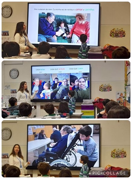 Rapidamente nasceu um convite para ir à sala do 2.°C falar sobre a nossa realidade familiar, assim como partilhar com as crianças a importância de apoiar e cuidar dos idosos, principalmente em situações em que estão institucionalizados num lar.